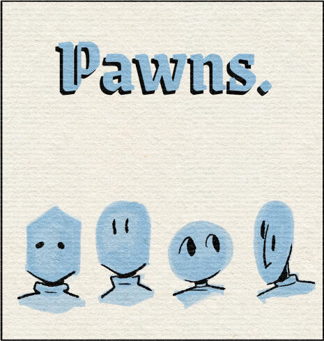 - Pawns are the builders and day-to-day operators of chessman society, and the most varied lot. Most of them have a strong core desire related to achieving something of value to themselves or to the people around them. Someone who is a Pawn is someone that wants to make a difference, and this means that they can and will go to great lengths to achieve incredible things: good or evil.- Even more than the rest of the chessmen, Pawns appreciate clear structure of some sort--even if that structure involves going on a myriad of differing adventures or doing dangerous things. So long as they have some idea of what they are supposed to do next, they can work tirelessly towards all sorts of incredible goals.- That said, while the other types of chessmen tend to keep a focus on a specific vocation, Pawns are extremely versatile. They excel at learning things or accomplishing tasks and then moving on to new fields, transcending genre and old limitations every time.- Pawns who feel especially strongly about a very specific calling might Promote to a different piece once they have begun to fulfill it. This often happens in childhood or at adolescence. Later Promotions are not completely unheard of, but are extremely rare.