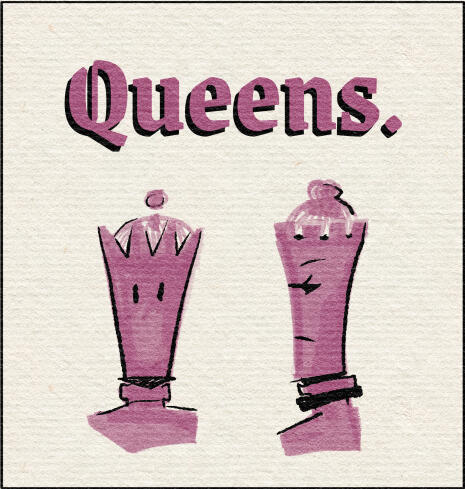 Queens are the second largest chessmen, with a reputation for being both effective and cut throat in their fields of interest. Many of them hone themselves into powerful combatants, capable of protecting their homes and loved ones with terrifying grace and ruthless efficiency.Those who prefer to operate on subtler battlefields are commonly strategists, executives, generals and managers of large holdings or social bodies. Despite their fearsome reputations, Queens typically have either a very magnetic charisma or some other form of personal, powerful authority that inspires people to join them in the pursuit of their vision.Queens are always female.