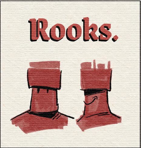 Rooks are large and sturdy, and are the strongest type of chessman, with a reputation for great loyalty. Because of their size, they are commonly found in positions like engineer, smith, soldier, guard or laborer--anything at all that needs a bit of brawn to get done, and sometimes things that don't; and because of their fidelity, they are sometimes instead or additionally invested with the duties of counsellors, advisors, keepers of secrets, and protectors of precious things.