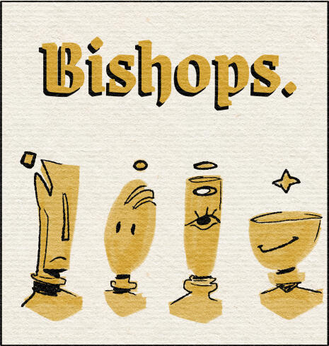- The core desire of a Bishop is usually to Know Things. This makes them very good at everything from reconnaissance to study. Some Bishops turn this desire towards higher things, studying philosophy and metaphysics; others desire to know more about the world itself, becoming scientists and students of nature, magic and history. Certainly there are also Bishops who like to know other peoples' business, becoming spies or intelligence-gatherers, and still others, like Knights, love to know all there is about a specific subject of interest.- Bishop Apertures vary greatly, not just in appearance but also in function. Some Bishops may receive strong spellcasting prowess from theirs, while others may gain the sharpening of their senses, the ability to see ghosts, minor innate telekinesis or telepathy, thermal vision, or the ability to sense magic so finely that it can practically be seen.- In addition to the above, all Bishops have some minor natural ability to tap into their own ambiently gathered mana. Even without study, they can cast one or two simple spells.- Knights and Bishops are closely related in that their core desire is mastery of a given subject or duty. Generally (but not always,) Bishops will have the more academic, arcane or subtle interests.